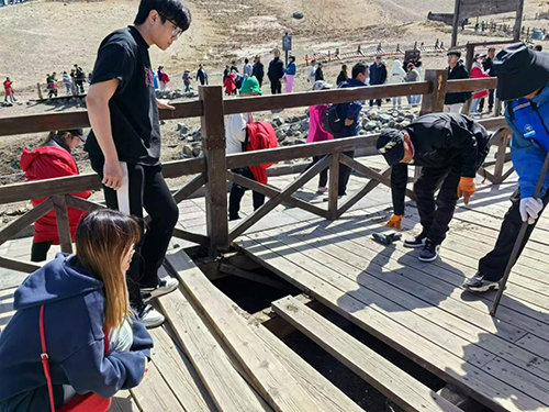 主峰管理員于子成見(jiàn)狀趕緊上前詢(xún)問(wèn),并立即將情況報(bào)告組長(zhǎng)楊曉旭。由于天池主峰特殊的火山砂礫地質(zhì)環(huán)境,給尋找一枚小小的戒指增加了相當(dāng)大的難度。楊曉旭一邊安撫游客情緒,一邊詢(xún)問(wèn)游覽線路范圍,幫助兩人回想戒指遺失的大概位置。同時(shí)組織員工們在二人走過(guò)的游覽線路之間,一寸一寸仔細(xì)尋找,最終將戒指遺失位置鎖定在木板棧道縫隙下。最后通過(guò)拆除了二十余塊木板,終于找到了“藏”在棧道下的金戒指。邵先生拿到戒指十分感動(dòng),當(dāng)即拿出“紅包”表示感謝,主峰管理部員工們果斷拒絕:“這都是我們應(yīng)該做的,你們的滿意和認(rèn)可就是對(duì)我們最大的支持和鼓勵(lì)”。