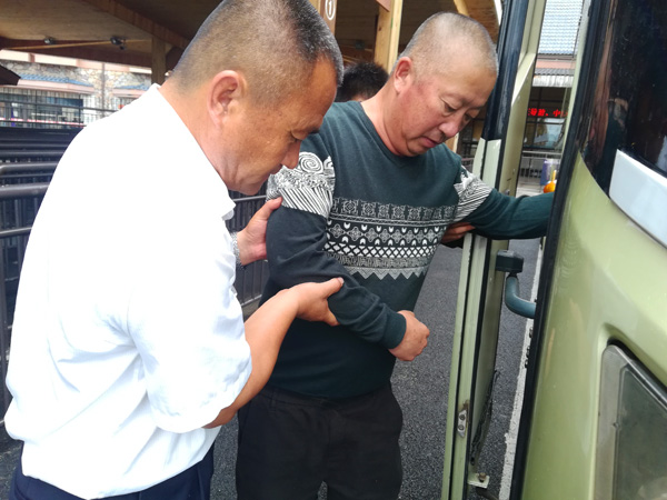 由于每天的工作時(shí)間較長(zhǎng),嗓子一直處于沙啞、疲勞狀態(tài),調(diào)度員們偶爾會(huì)采用不同的手勢(shì)與駕駛員隔空交流,把車停在不同的發(fā)車口,高默契的無(wú)縫配合減少了游客排隊(duì)的時(shí)間。為了使駕駛員能清楚的看到調(diào)度手勢(shì),他們站在停車場(chǎng)中最顯眼的地方,長(zhǎng)時(shí)間在烈日下的工作,深灰色工裝褪色成了灰白色,裸露在外的皮膚已變得黑亮。晴天一身汗,雨天一身水。默默地奉獻(xiàn)在工作崗位,他們也從不抱怨。