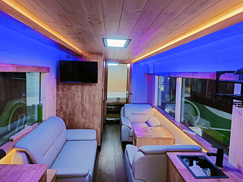 與此同時,北景區(qū)也正如火如荼地進行房車升級改造建設(shè)。面對房車改造這個陌生的領(lǐng)域,北、西景區(qū)檢修部聯(lián)合后勤保障部立即組織精干力量,投入到緊張的房車改造建設(shè)中。翻視頻、查資料、畫圖紙,檢修團隊每天晚上研究探討至深夜,翌日天明就立即投入到緊鑼密鼓地施工中,三十多個日夜,周而復(fù)始……,每一顆隱藏的螺絲、每一處平滑的包角,全力以赴地?fù)屪シ寇嚫脑祉椖抗て冢?/span>傾注了集體的辛勞與智慧。目前,4臺老舊車輛內(nèi)飾已換裝成為高端旅游度假房車,既提高了閑置資源的利用效率,又豐富了托管景區(qū)的旅游產(chǎn)品,并于9月18日全面完成改造,交付白山湖仁義景區(qū)使用。